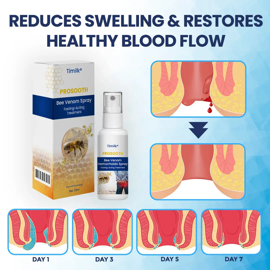 Timilk® ProSooth Bee Venom Hemorrhoids Spray delivers fast, medical-grade relief in a gentle, discreet mist. Formulated to ease irritation, reduce swelling, and promote lasting recovery, its easy-to-apply 360° design lets you treat flare-ups anytime, anywhere—so you can sit, move, and live comfortably and confidently again.